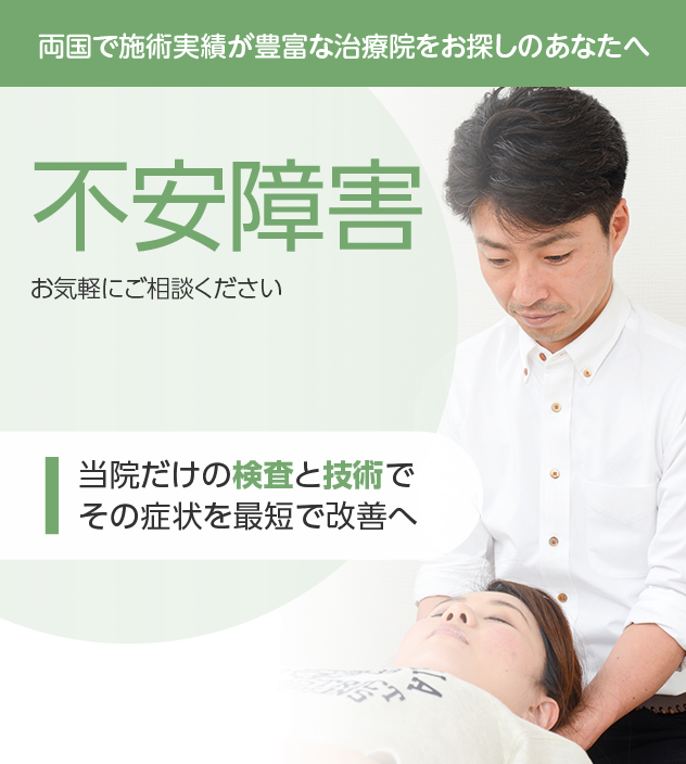 これまで改善しなかったとしても諦める必要はありません。不安障害は豊富な施術実績を誇る当院にお任せください。