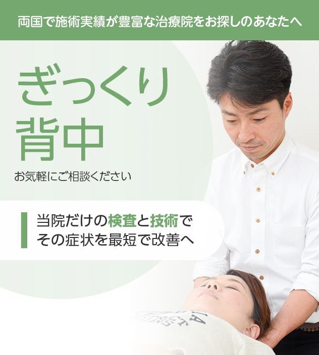 これまで改善しなかったとしても諦める必要はありません。ぎっくり背中は豊富な施術実績を誇る当院にお任せください。
