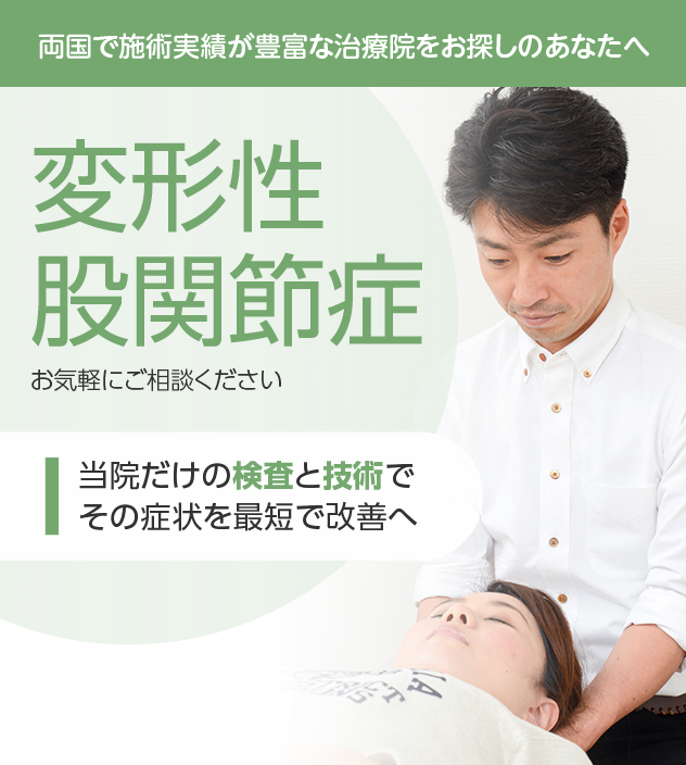病院やほかの治療院で改善しなかったとしても諦める必要はありません。変形性股関節症は豊富な施術実績を誇る当院にお任せください。