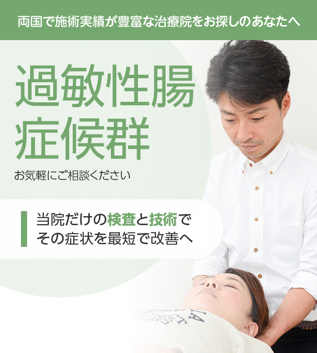 病院やほかの治療院で改善しなかったとしても諦める必要はありません。過敏性腸症候群は豊富な施術実績を誇る当院にお任せください。