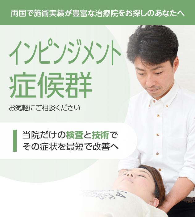 病院やほかの治療院で改善しなかったとしても諦める必要はありません。インピンジメント症候群は豊富な施術実績を誇る当院にお任せください。