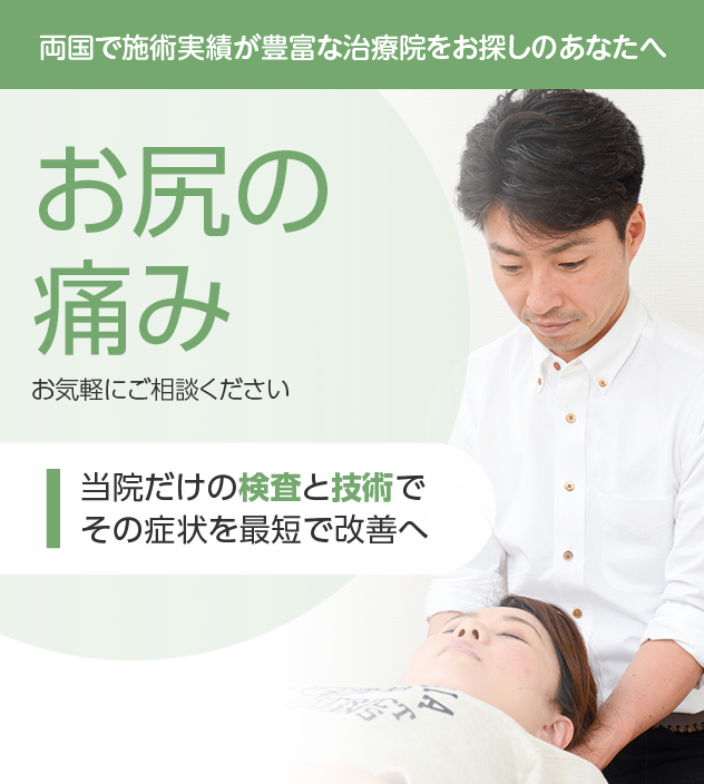 これまで改善しなかったとしても諦める必要はありません。お尻の痛みは豊富な施術実績を誇る当院にお任せください。