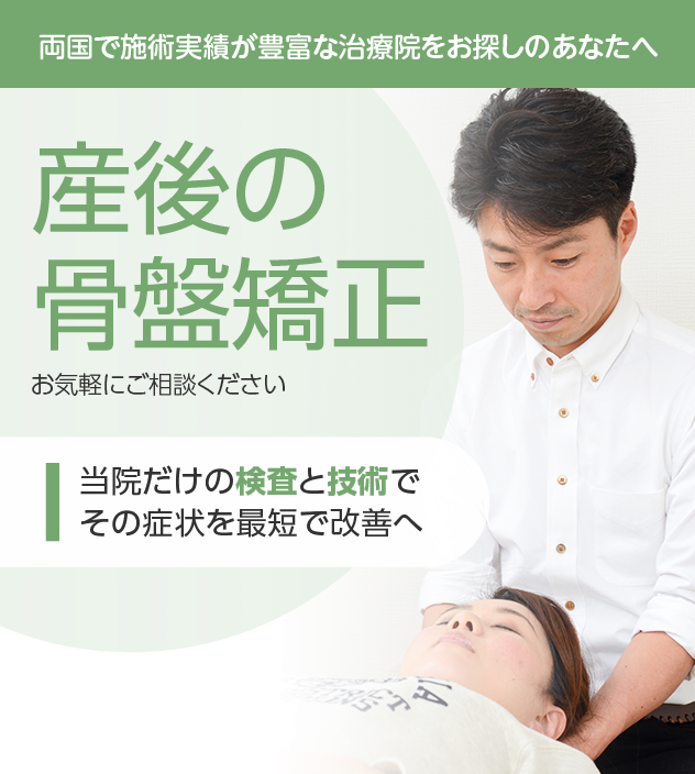 これまで改善しなかったとしても諦める必要はありません。産後の骨盤矯正は豊富な施術実績を誇る当院にお任せください。